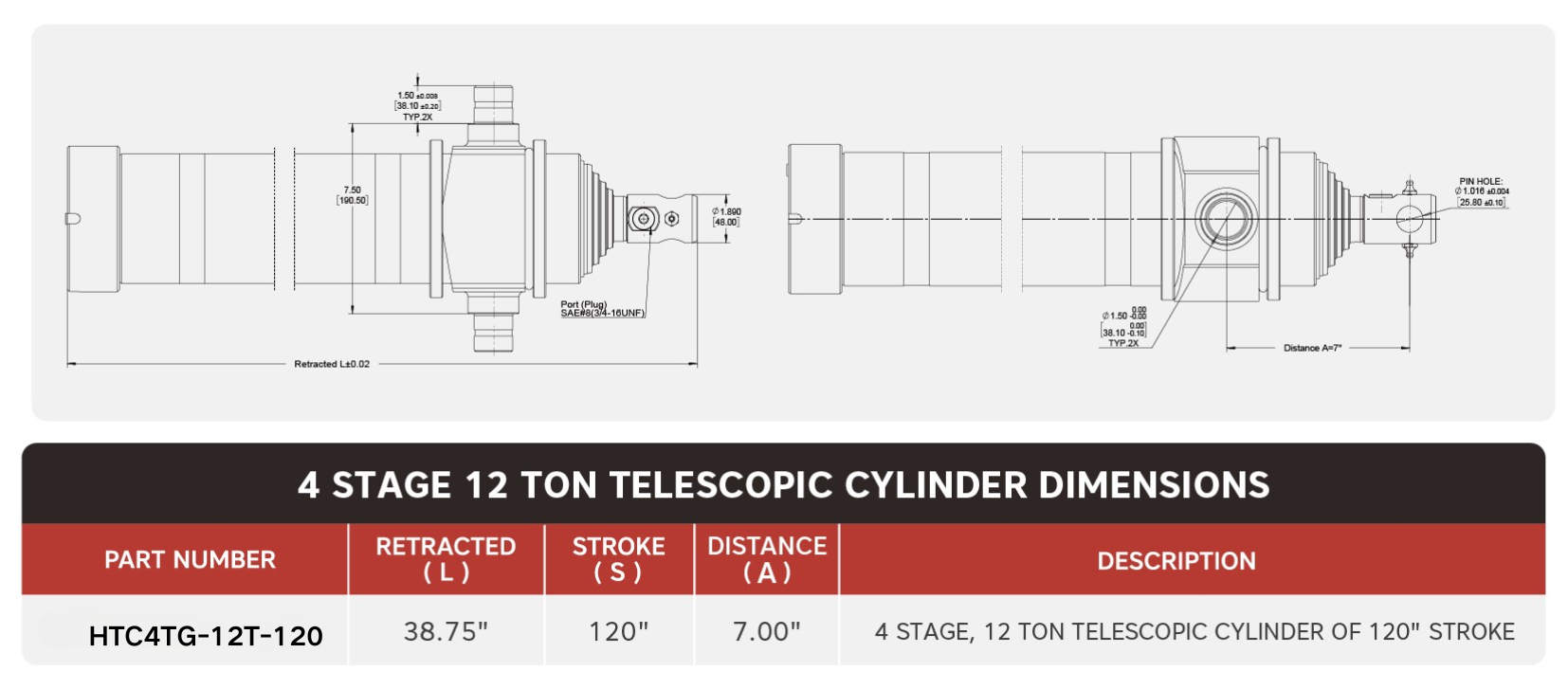 「HTC4TG-12T-120」 4段 12トン 120インチストローク伸縮シリンダ