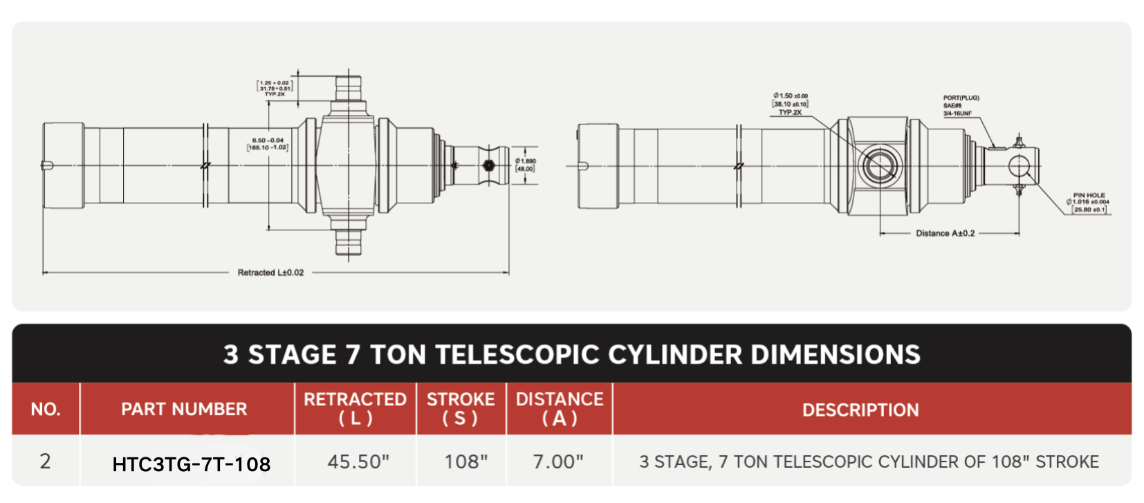 「HTC3TG-7T-108」 3段 7トン 108インチストローク伸縮シリンダ