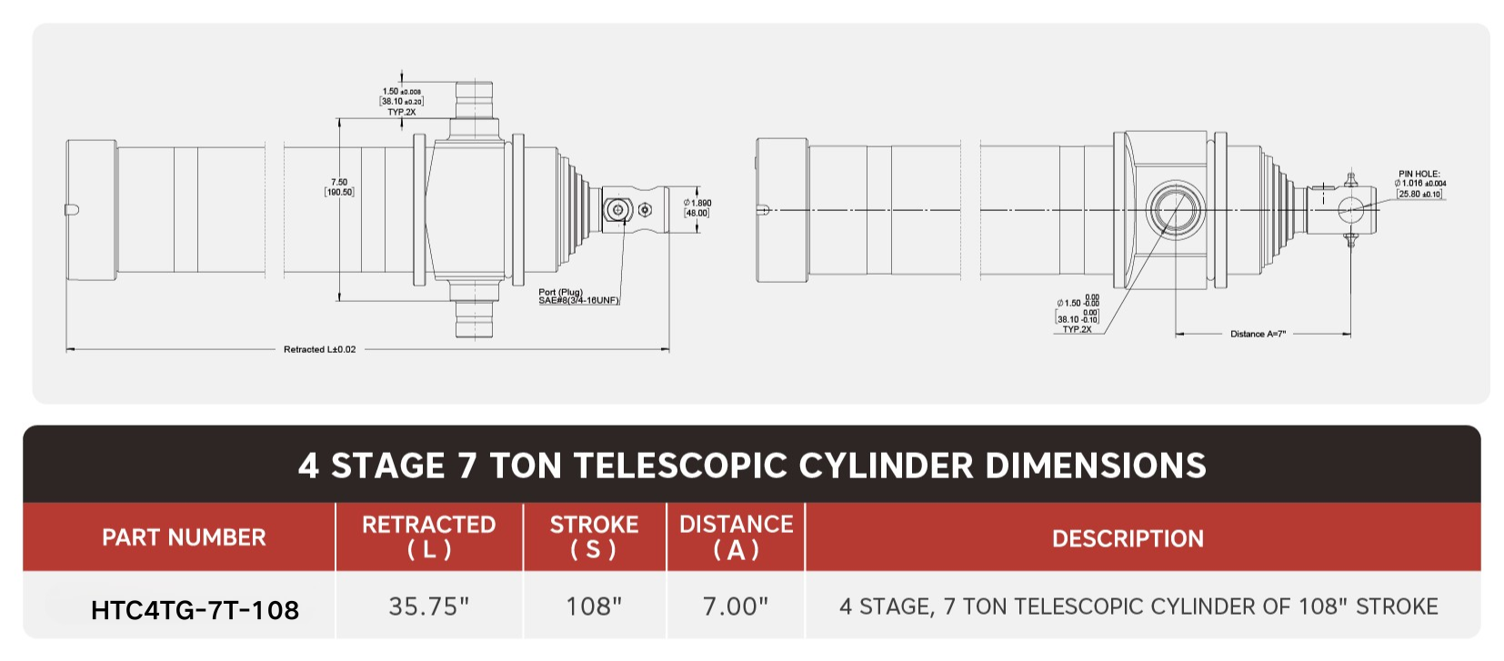 「HTC4TG-7T-108」 4段 7トン 108インチストローク伸縮シリンダ