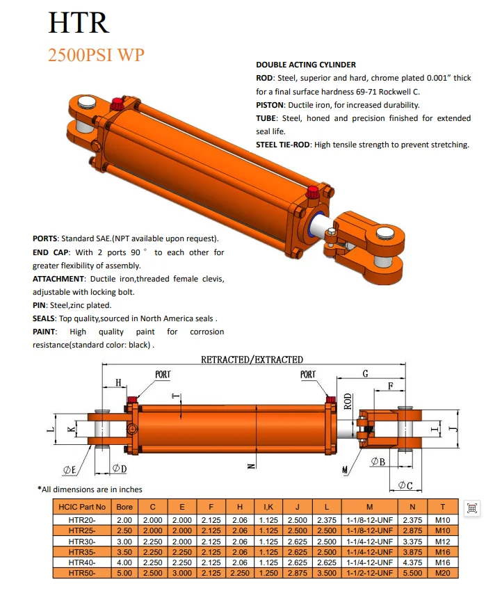 この HCIC 標準クレビス溶接シリンダは、ボア 4 インチ、ストローク 36 インチ、直径 2 インチのロッドを備えています。 複動形 SAE 8 (-08) ORB(F) 動作ポート 最大使用圧力 2,500 PSI クレビスマウント 1インチの取り付けピンが付属 グロスブラック塗装は耐久性があり、色あせしにくいです。